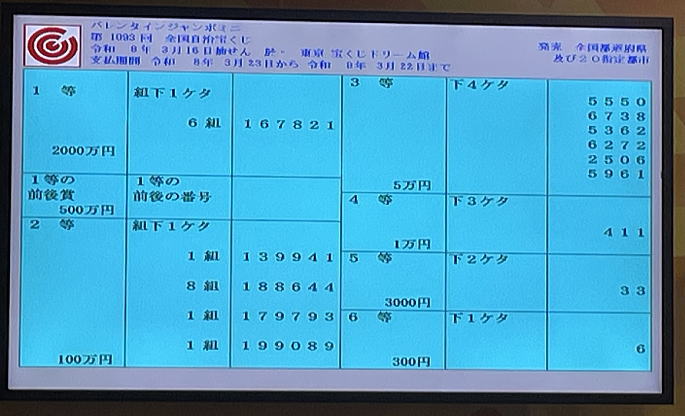 2026年年3月16日(月)抽選 バレンタインジャンボミニ(第1093回)